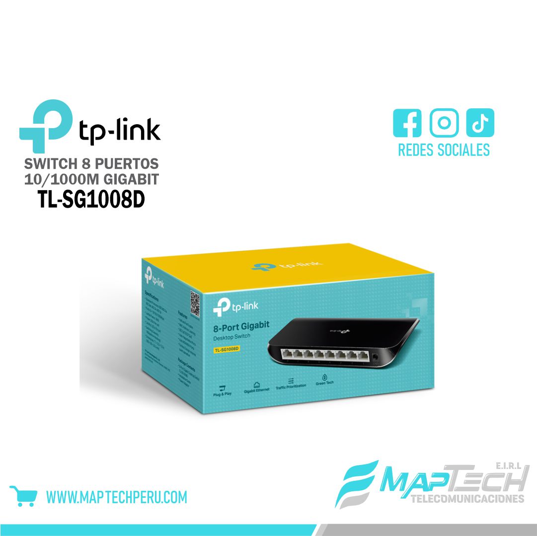 - 8 puertos RJ45 Gigabit con detección automática de velocidad, soporte para MDI/MDIX automático